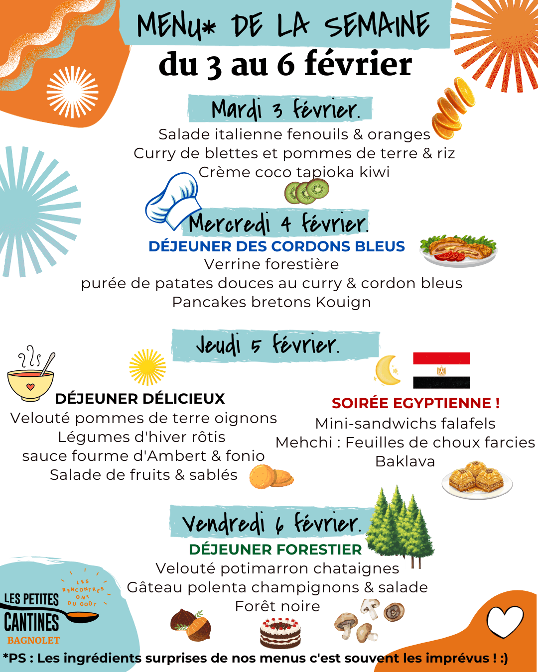 Les ingrédients surprises de nos menus, c'est souvent les imprévus !